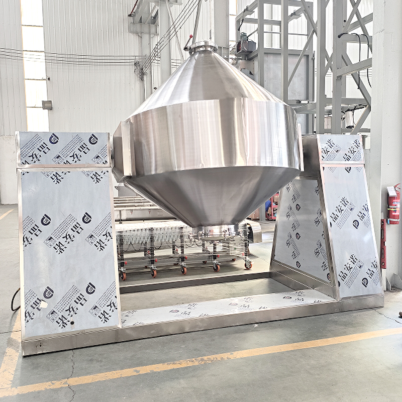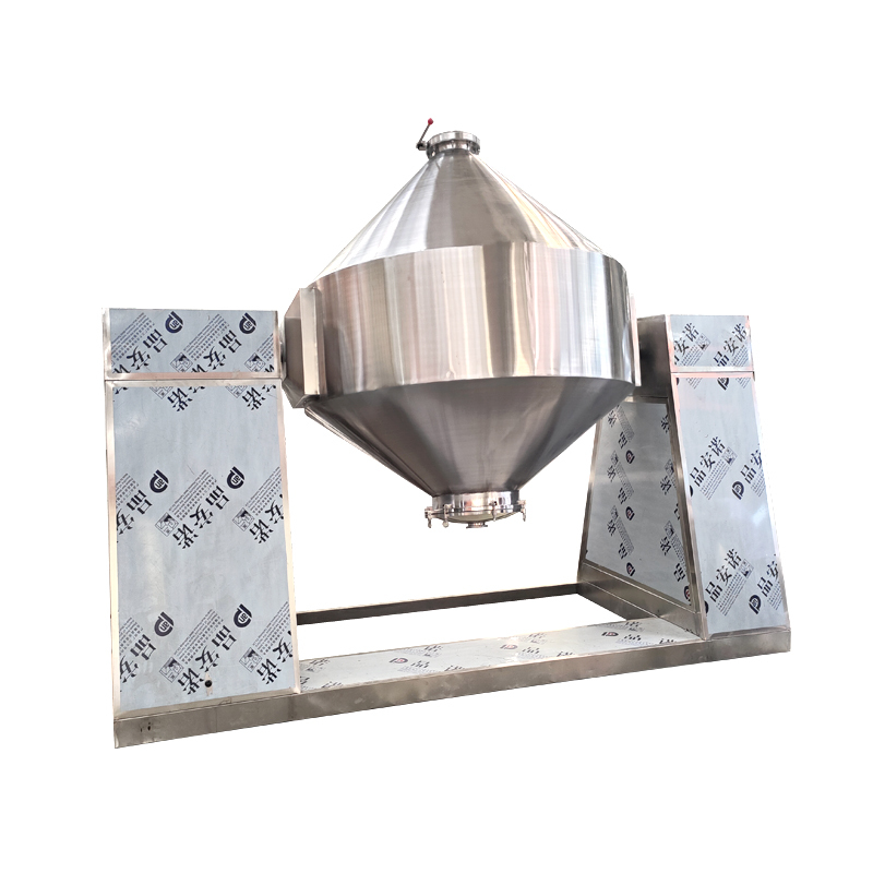 Çift konili karıştırıcı, ilaç, kimyasal ve diğer endüstrilerde kullanılan toz karıştırma ekipmanıdır."Çifte koni" şeklini oluşturmak için merkezi bir eksenle birbirine bağlı simetrik konik kabuklardan oluşurİşlem sırasında, motor silindirleri yatay bir eksen etrafında döndürür. Yerçekimi ve merkezkaç kuvvetinin etkisi altında, malzemeler düşer ve yayılır ve eşit karışım elde edilir.Yüksek karıştırma verimliliğine sahiptir., düşük kalıntı, güçlü uyarlanabilirlik ve yapışkanlığı azaltmak için iç duvarı cilalanmıştır. Bazı modeller vakum sistemi ile donatılabilir ve kuru tozları, granülleri vb karıştırmak için uygundur.