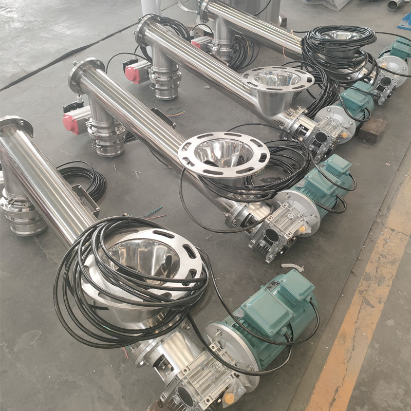 2. 3 çıkışla yatay vida taşıyıcı, her çıkış bir kelebek valfi ile donatılır, toplu bir torba doldurmak için ihtiyacınız olduğunda, sadece kelebek valfi açmak