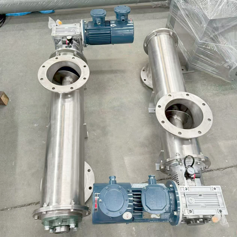 1. Helezon konveyör, karıştırılmış malzemeyi şerit mikserden yatay bir helezon konveyöre taşır