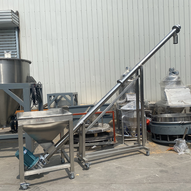 1. Helezon konveyör, karıştırılmış malzemeyi şerit mikserden yatay bir helezon konveyöre taşır