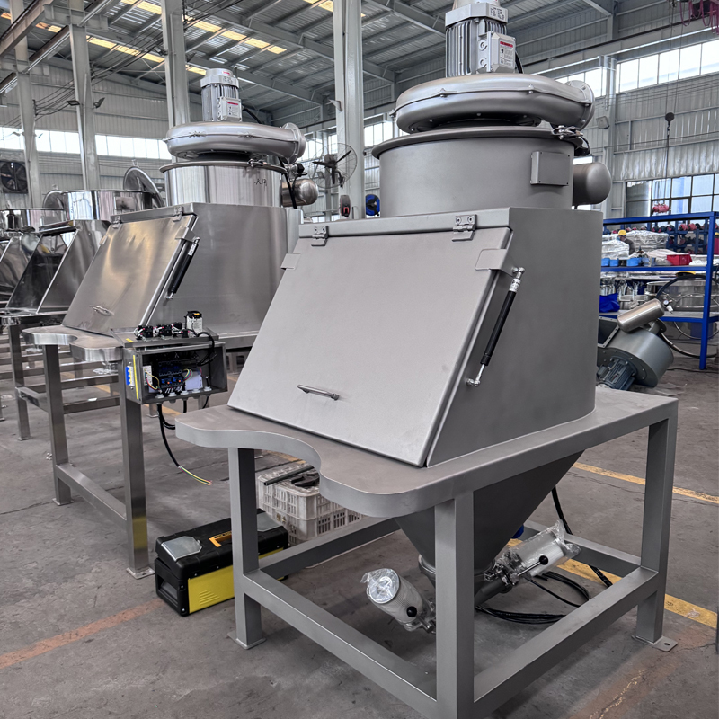 The dust-free feeding station is an efficient and environmentally friendly feeding equipment specially designed for industries such as food, chemical, and new materials. It is mainly used for unpacking, feeding, and screening of small bag powder or granular materials. Its core advantage lies in the use of a fully enclosed structure combined with a negative pressure dust removal system, which effectively prevents dust from escaping during manual or semi-automatic feeding processes, avoiding environmental pollution and material waste in the workshop. The equipment integrates a vibrating screening function, which can simultaneously remove large impurities from the materials, ensuring the accuracy of feeding and the smooth connection of subsequent processes. The overall material is made of stainless steel of hygienic grade, featuring easy cleaning and corrosion resistance. This not only reduces the labor intensity of workers but also meets the comprehensive requirements of modern production for safety, environmental protection, and efficiency. It is one of the key equipment for upgrading powder processing production lines.